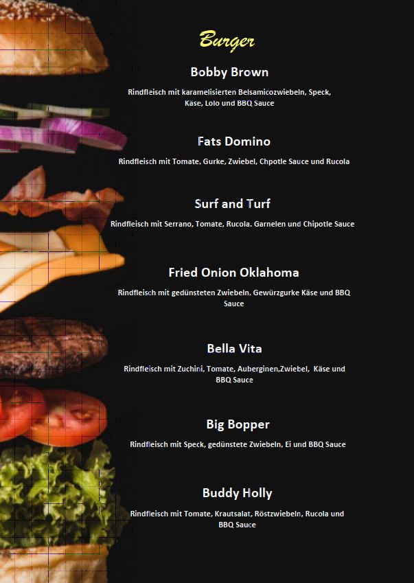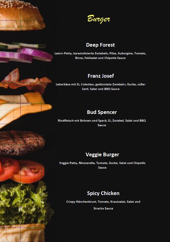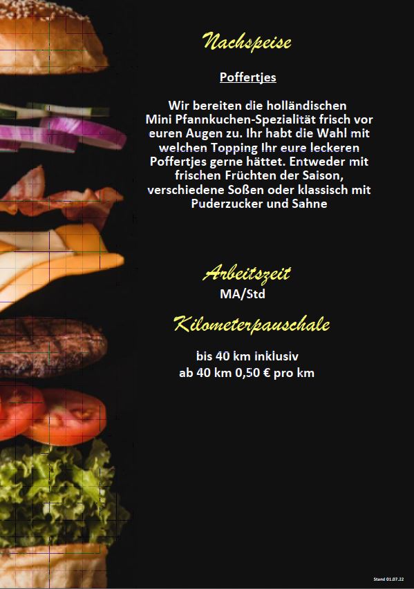 Die folgende Speisekarte ist nur ein Vorschlag. Wir erstellen gern eine speziell für Sie passende Speisekarte.